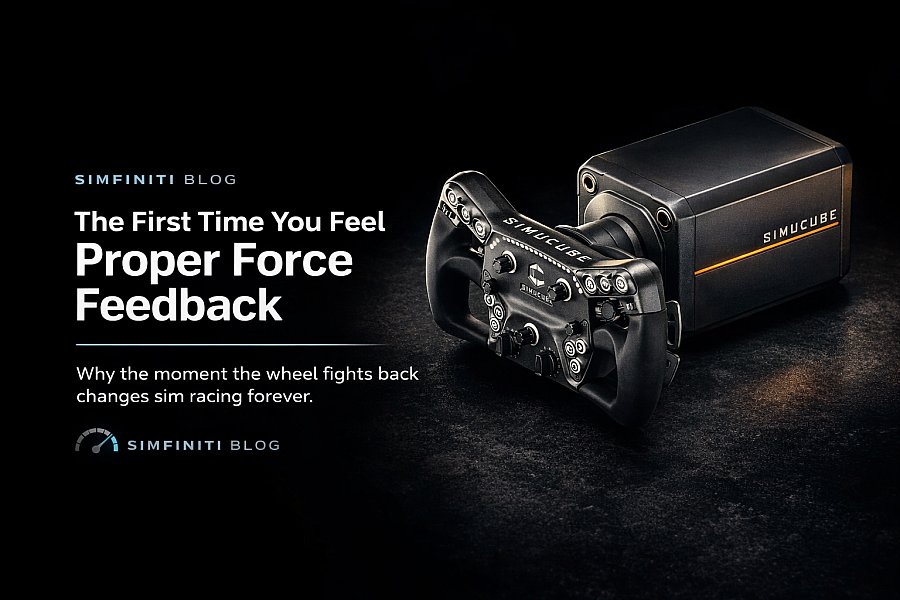 There’s a moment in a proper racing simulator when the steering wheel suddenly comes alive. The first time you feel real force feedback — the weight of the car, the kerbs, the loss of grip — is the moment sim racing stops feeling like a game and starts feeling like driving.
